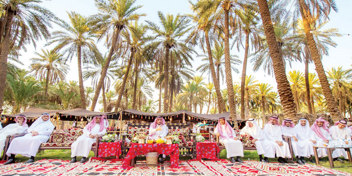 وتجول سموه في أرجاء المنتجع، وقدم له المشرف العام على المنتجع والمالك له أحمد الجربوع شرحًا موجزًا عما يحتويه من نخيل وأشجار مثمرة، و»سواني» وجلسات تحت النخيل للزوار، ومأكولات شعبية، وأقسام للحِرف اليدوية والتحف القديمة. مفيدًا بأن عمر المزرعة التي أقيم بها هذا المنتجع يزيد على الـ190 عامًا، وكاشفًا أن بالمزرعة أكثر من 570 نخلة، تجاوز عمرها 150 سنة.