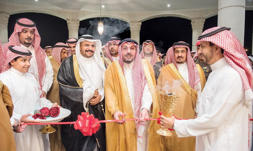 وفور وصول سموه مقر الاحتفالات، قص شريط الافتتاح، ثم تجول سموه داخل المقر الذي تبرع فيه رجل الأعمال عبدالله بن إبراهيم العواد، مستمعاً إلى شرحاً منه عن ما يحتويه المقر، الذي يقع على مساحة إجمالية بلغت 6 آلاف متر مربع، مشيداً سموه بمثل هذه المبادرات الأهلية التي تخدم أهالي المركز في أفراحهم وملتقياتهم السنوية.