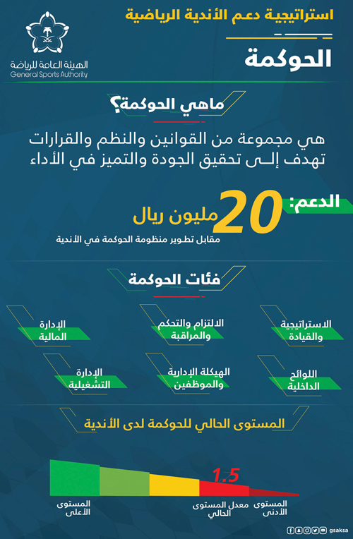 - يحصل كل نادٍ من أندية دوري المحترفين على مبلغ (20 مليون ريال سعودي)، في حال قام النادي بمطابقة معايير محدّدة من ناحية الاستراتيجيّة والقيادة والهيكلة الإداريّة والإدارة الماليّة والإدارة التشغيليّة ومسؤوليّة أصحاب العلاقة والالتزام والتحكّم والمراقبة واللوائح الداخلية.