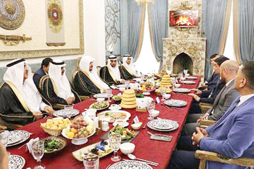 أقام فخامة رئيس جمهورية قرغيزستان سورونباي جينبيكوف في العاصمة القرغيزية بيشكيك أمس الأول الأربعاء حفل عشاء تكريماً لمعالي رئيس مجلس الشورى الشيخ الدكتور عبدالله بن محمد بن إبراهيم آل الشيخ، والوفد المرافق له الذي يقوم بزيارة رسمية لجمهورية قرغيزستان. حضر حفل العشاء معالي رئيس البرلمان القرغيزي داستانبيك جمعبيكوف، ووزير قرغيزيا جينكيز ايدر بيكوف، وعضو البرلمان ورئيس لجنة الصداقة السعودية القرغيزية ذو الفقار تورباي، ومدير مكتب الرئيس للشئون الدولية دنيار باتروفيتش.كما حضر حفل العشاء أعضاء مجلس الشورى المرافقون لمعاليه الدكتور عبدالله بن رفود السفياني، والدكتور محمد بن عبدالعزيز الجرباء، والأستاذ عبدالله بن راشد الخالدي، وسفير خادم الحرمين الشريفين لدى جمهورية قرغيزستان الأستاذ عبدالرحمن الجمعة.