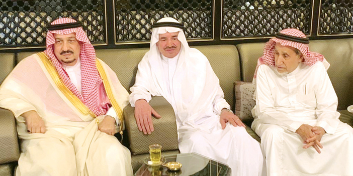 قدم صاحب السمو الملكي الأمير فيصل بن بندر بن عبد العزيز أمير منطقة الرياض العزاء والمواساة لأسرة الشبيلي في وفاة والدهم الدكتور عبد الرحمن بن صالح الشبيلي - رحمه الله - وذلك في زيارة قام بها سموه مساء أمس لمقر العزاء . وسأل الأمير فيصل بن بندر الله - العلي القدير - أن يتغمد الفقيد بواسع رحمته ويسكنه فسيح جناته وأن يلهمهم الصبر والسلوان.
