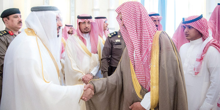 استقبل صاحب السمو الملكي الأمير الدكتور فيصل بن مشعل بن سعود بن عبدالعزيز أمير منطقة القصيم، بقصره عصر أمس الأول، جموع المهنئين بعيد الأضحى المبارك، يتقدّمهم أصحاب الفضيلة العلماء، والمحافظين ومديرو الدوائر الحكومية، وأعضاء مجلس المنطقة، ورؤساء المراكز، وكبار المسؤولين في المنطقة من مدنيين وعسكريين، وعدد من المواطنين، الذين قدموا للسلام على سموه وتهنئته بعيد الأضحى المبارك، حيث بادلهم التهنئة بهذه المناسبة السعيدة, مؤكداً سموه أن ما تقوم به المملكة من خدمة لضيوف بيت الله الحرام هو شرف عظيم نفتخر ونعتز به, حامدًا الله سبحانه وتعالى أن أنعم على هذه البلاد وشرّفها بخدمة الحرمين الشريفين، إذ إن خدمة ضيوف الرحمن هو شرف لنا جميعاً، مشيراً إلى أن ما يميز هذه البلاد أن قيادتها وشعبها على ملة واحدة واتجاه واحد ولله الحمد.