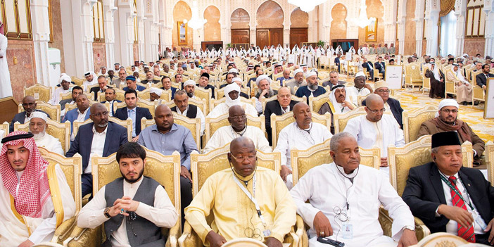 ورفع معاليه باسم رابطة العالم الإسلامي التي تضم في مجالسها وهيئاتها ومجامعها العالمية كبار علماء ومفكري الأمة الإسلامية، أجزل الشكر وأوفاه لخادم الحرمين الشريفين الملك سلمان بن عبدالعزيز آل سعود وسمو ولي عهده الأمين - حفظهما الله - على ما لمسه الجميع من الأثر المبارك لخدمة الإسلام والمسلمين. وأضاف معاليه: لقد صدر عن أكثر من ألف ومائتي مفتي وعالم في شهر رمضان الماضي، وهم يمثلون سبعة وعشرين مكوناً إسلامياً من مختلف المذاهب والطوائف، صدر عنهم وثيقة تاريخية هي وثيقة مكة المكرمة، في أعقاب مؤتمر رابطة العالم الإسلامي. وأوضح معاليه أن الوثيقة حفلت بتسع وعشرين فقرة، رسمت منهج علماء الأمة الإسلامية مجتمعين لها في أطهر البقاع، حيث قبلتهم ومرجعيتهم الجامعة في مكة المكرمة المملكة العربية السعودية، وقد وافى صدور هذا المنجز الكبير فضل العشر الأواخر من شهر رمضان المبارك. واستطرد معاليه يقول: ومن فضل الله تعالى أن هذه الوثيقة لقيت ترحيبا كبيرا، سواء من الداخل الإسلامي أو خارجه، موضحة سنة الخالق سبحانه في الاختلاف والتنوع والتعدد، ورافضة كافة شعارات الاستعلاء والإقصاء وأصوات الكراهية والعنصرية، أيا كانت ذرائعها، مع التأكيد على أن التباين بين الأمم والشعوب في الأديان والثقافات يدعو الجميع للتواصل للحوار والتعايش والتعاون.