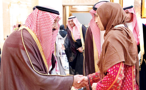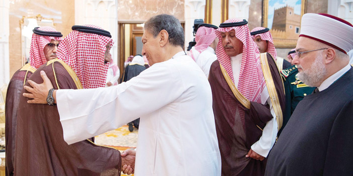 بعد ذلك تشرف الجميع بالسلام على خادم الحرمين الشريفين - حفظه الله -. وفي ختام حفل الاستقبال تناول الجميع طعام الغداء مع خادم الحرمين الشريفين. حضر حفل الاستقبال صاحب السمو الملكي الأمير خالد الفيصل بن عبدالعزيز مستشار خادم الحرمين الشريفين أمير منطقة مكة المكرمة رئيس لجنة الحج المركزية، وصاحب السمو الأمير خالد بن فهد بن خالد، وصاحب السمو الملكي الأمير طلال بن سعود بن عبدالعزيز، وصاحب السمو الملكي الأميرخالد بن بندر بن عبدالعزيز مستشار خادم الحرمين الشريفين، وصاحب السمو الملكي الأمير فيصل بن خالد بن عبدالعزيز مستشار خادم الحرمين الشريفين، وصاحب السمو الملكي الأمير محمد بن نواف بن عبدالعزيز مستشار خادم الحرمين الشريفين، وصاحب السمو الأمير الدكتور خالد بن فيصل بن تركي وكيل الحرس الوطني للقطاع الغربي، وصاحب السمو الملكي الأمير الوليد بن طلال بن عبدالعزيز، وصاحب السمو الأمير الدكتور بندر بن عبدالله بن تركي، وصاحب السمو الأمير فيصل بن سعود بن محمد، وصاحب السمو الملكي الأمير تركي بن عبدالله الفيصل، وصاحب السمو الملكي الأمير الدكتور حسام بن سعود بن عبدالعزيز أمير منطقة الباحة، وصاحب السمو الأمير الدكتور بندر بن سلمان بن محمد، وصاحب السمو الملكي الأمير الدكتور عبدالعزيز بن سطام بن عبدالعزيز مستشار خادم الحرمين الشريفين، وصاحب السمو الملكي الأمير تركي بن طلال بن عبدالعزيز أمير منطقة عسير، وصاحب السمو الأمير تركي بن عبدالله بن مساعد، وصاحب السمو الملكي الأمير عبدالعزيز بن سعود بن نايف بن عبدالعزيز وزير الداخلية رئيس لجنة الحج العليا، وصاحب السمو الملكي الأمير بدر بن سلطان بن عبدالعزيز نائب أمير منطقة مكة المكرمة، وصاحب السمو الأمير فيصل بن محمد بن سعد وكيل إمارة منطقة مكة المكرمة المساعد للحقوق، وصاحب السمو الأمير سعود بن عبدالله بن جلوي مستشار أمير منطقة مكة المكرمة وكيل محافظة جدة، وصاحب السمو الملكي الأمير سعود بن سلمان بن عبدالعزيز، وصاحب السمو الأمير بندر بن فهد بن بندر، وصاحب السمو الملكي الأمير تركي بن فيصل بن عبدالمجيد بن عبدالعزيز.