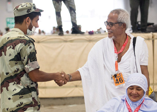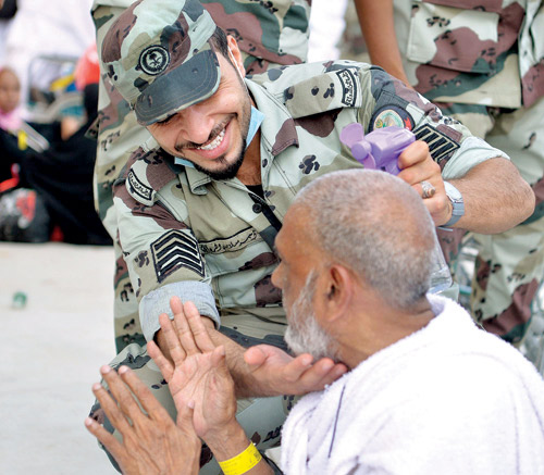سخَّروا أنفسهم لخدمة ضيوف الرحمن، يستمدون عطاءهم من عِظم مسؤولية وثقة قيادة، غرست فيهم شرف خدمة الحاج، وجعلته وسامًا يعلو على جبين كل مواطن. على صعيد منى مشاهد ووقفات إنسانية عدة، بادر بها رجال الأمن بمختلف مواقعهم، يتسابقون نحو ضيوف الرحمن لعونهم ومساعدتهم. في هذا المشهد العظيم أبت الإنسانية إلا أن تقف أمام رجال صدقوا ما عاهدوا الله عليه.. عين تحرس، ويد تبذل بفيض مشاعر وكريم خُلق.