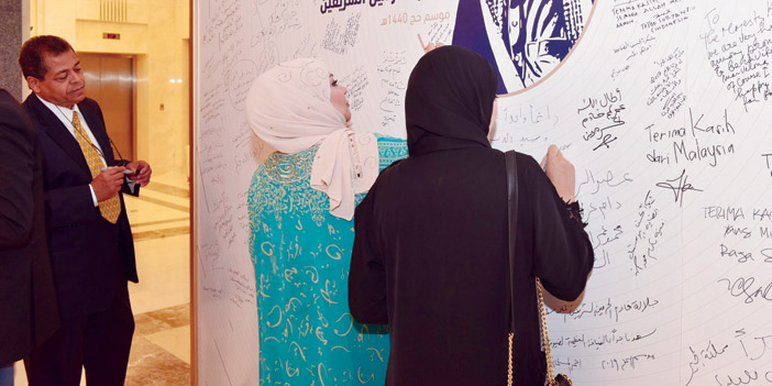 عبر ما يقارب من 300 إعلامي من ضيوف وزارة الإعلام في حج هذا العام 1440هـ عن شكرهم وتقديرهم لخادم الحرمين الشريفين الملك سلمان بن عبدالعزيز آل سعود - حفظه الله - من خلال تدوين مشاعرهم وانطباعاتهم لما قدمته وتقدمه المملكة العربية السعودية من جهود لخدمة حجاج بيت الله الحرام. وتم توقيع جدارية شكر خادم الحرمين الشريفين خلال حفل وزارة الإعلام الختامي لموسم حج هذا العام الذي أقيم أمس في فندق الرتزكارلتون بجدة، وتضمنت الجدارية عبارات مؤثرة ومشاعر صادقة من ضيوف وزارة الإعلام من الإعلاميين من مختلف وسائل الإعلام العربية والإسلامية والعالمية، حيث استخدم بعضهم لغاتهم الأم في التعبير عن شكرهم لخادم الحرمين الشريفين على كل ما شاهدوه ولمسوه من تسهيلات وخدمات قدمتها المملكة لحجاج بيت الله الحرام خلال موسم حج هذا العام بإشراف ومتابعة من خادم الحرمين الشريفين وسمو ولي عهده الأمين - حفظهما الله -.
