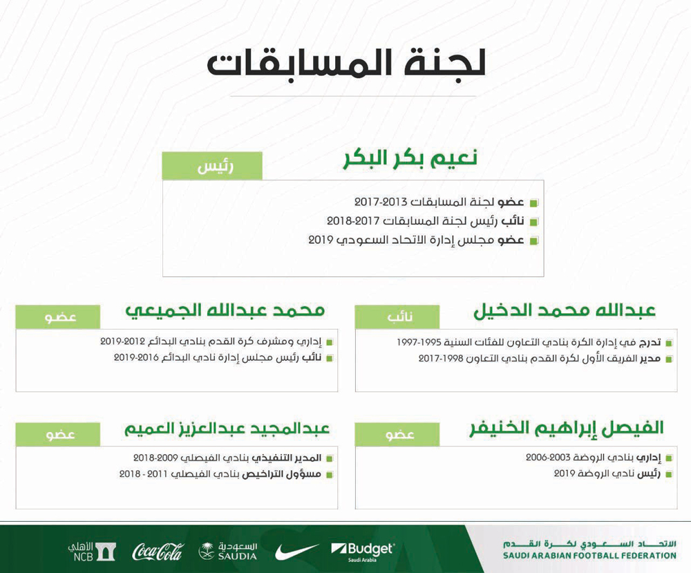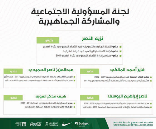 اعتمد مجلس إدارة الاتحاد السعودي لكرة القدم برئاسة الأستاذ ياسر المسحل تشكيل لجان المسابقات والحكام والمسئولية الاجتماعية.