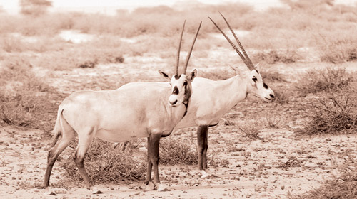 تركزت أنظار من حولي وأولهم أبو معتوق مما جعلني أطمأن وأسترسل في الحديث.. أتعلم أن المها في اللغة العربية تعني الشمس أو الكواكب أو الحجارة البيضاء أو البلورة التي تبرق! وربما سمي بالمها لشدة بياضه، ويطلق عليها أيضا اسم «الماريّة» أو الوضيحي بسبب وضوح لونها الأبيض من على بعد، وسميت أيضاً بالبقر الوحشي، كما عرفت بأسماء محلية بسلطنة عمان والإمارات العربية المتحدة كإبن سولع أو السولعي، ويُعْتَقد بعض العلماء أن أسطورة الحيوان أحادي القرن والذي يشبه الحصان يرجع للمها العربيّة، فهي تظهر للناظر من الجانب على أنها ذات قرن واحد، وهذا ما أظهرته الرسومات القديمة في بعض كهوف جنوب فلسطين.