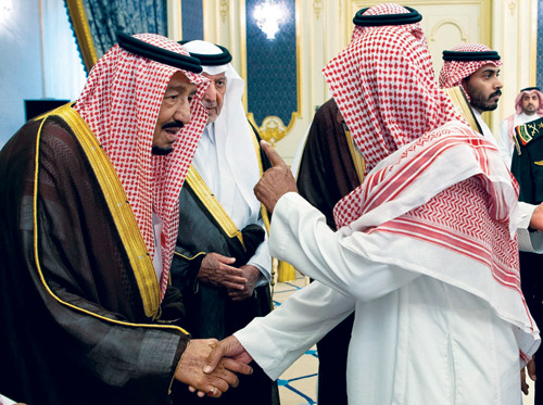 استقبل خادم الحرمين الشريفين الملك سلمان بن عبد العزيز آل سعود - حفظه الله - في قصر السلام بجدة أمس، أصحاب السمو الأمراء، وأصحاب الفضيلة العلماء، وجمعاً من المواطنين الذين قدموا للسلام عليه - رعاه الله. وفي بداية الاستقبال، أنصت الجميع لتلاوة آيات من القرآن الكريم. ثم تشرف الحضور بالسلام على خادم الحرمين الشريفين - أيده الله.