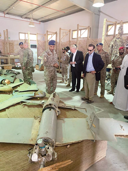 قام معالي مساعد وزير الخارجية الأمريكي لشؤون الشرق الأدنى السيد/ ديفيد سينكر برفقة وفد أمريكي بزيارة موقع مستودع الإدارة العامة للأسلحة والمدخرات بالخرج لمشاهدة بقايا الصواريخ والطائرات المسيرة التي أطلقت على المملكة ودمرتها قوات التحالف قبل وصولها لأهدافها، حيث كان في استقبال الوفد الأمريكي اللواء عبدالله بن إبراهيم الغامدي نائب قائد القوات المشتركة، وقد تجول في كافة أنحاء المعرض الذي يحتوي على الصواريخ والطائرات التي أطلقت أخيرًا على حقل شيبه والدوادمي ومطار أبها الإقليمي، كما استعرض جميع الأسلحة الإيرانية التي استهدفت السعودية.
