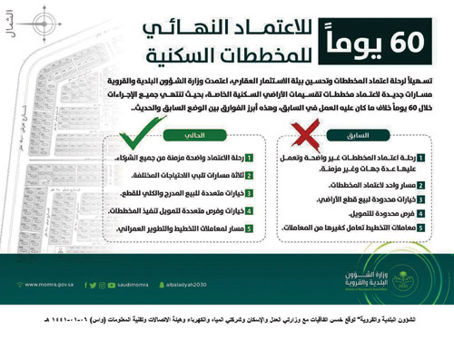 وقعت وزارة الشؤون البلدية والقروية أمس خمس اتفاقيات مع كل من وزارة العدل ووزارة الإسكان وهيئة الاتصالات وتقنية المعلومات والشركة السعودية للكهرباء وشركة المياه الوطنية، حول المسارات المحدثة وتحديد وتزمين (حوكمة) جميع الإجراءات لاعتماد المخططات السكنية الخاصة خلال (60) يوماً. ويأتي ذلك إنفاذاً لتوجيهات صاحب السمو الملكي الأمير محمد بن سلمان بن عبد العزيز ولي العهد نائب رئيس مجلس الوزراء وزير الدفاع، بالمسارعة في تنفيذ خطط التنمية العمرانية المطلوبة، ومتابعة معالي وزير الشؤون البلدية والقروية المكلف الدكتور ماجد بن عبدالله القصبي. وتهدف الاتفاقيات الموقعة بين وزارة الشؤون البلدية والقروية، والجهات الحكومية والشركات الخدمية، تعزيز سبل التعاون من خلال إنفاذ الأمر السامي الكريم الخاص باعتماد المخططات السكنية الخاصة خلال 60 يوماً، وتوحيد الجهود بهدف الإسراع في التنمية العمرانية من خلال سرعة اعتماد المخططات السكنية وتسهيل إجراءات التطوير وإنشاء البنية التحتية للمخططات، وتحقيق مبدأ التعاون بين الجهات الحكومية والشركات المقدمة للخدمات العامة والتنسيق المشترك بينها. وتضمنت الاتفاقية الموقعة بين وزارتي الشؤون البلدية والقروية والعدل، اعتماد العمل بنموذج حوكمة التحقق من الملكية وإثبات الهوية العقارية المشتمل على مسار عام للتحقق يتضمن قواعد ومعايير وضوابط التحقق من الملكية، ومعايير إثبات الهوية العقارية وقواعد حجيتها وتزمين للتحقق من الملكية العقارية لدى المحاكم وكتابات العدل بمتوسط 16 يوم عمل و26 يوما كحد أقصى. ونصت الاتفاقية الموقعة بين وزارتي الشؤون البلدية والقروية، والإسكان، على مرحلة تسليم مبلغ تكلفة تنفيذ البنية التحتية للمخطط، وذلك عبر خطوات ووفق شروط وتوقيتات زمنية محددة من خلال التعاون والتنسيق بين وزارتي الشؤون البلدية والقروية، والإسكان. وتضمنت الاتفاقية الموقعة بين وزارة الشؤون البلدية والقروية، وهيئة الاتصالات وتقنية المعلومات، الاتفاق على اعتماد المخططات التفصيلية والتنفيذية لأعمال تأسيس شبكة الهاتف خلال (20) يوم عمل، والاستلام النهائي لأعمال تأسيس شبكة الهاتف بعد الانتهاء من التنفيذ من قبل شركة الاتصالات المعنية وإفادة الأمانة بذلك خلال (15) يوم عمل. وشملت الاتفاقية الموقعة بين وزارة الشؤون البلدية والقروية، وشركة المياه الوطنية، اعتماد المخططات التفصيلية والتنفذية لأعمال المياه والصرف الصحي خلال (20) يوم عمل، ونصت على الاستلام النهائي لأعمال المياه والصرف الصحي بعد الانتهاء من التنفيذ، من قبل شركة المياه الوطنية وإفادة الأمانة بذلك خلال (15) يوماً. وتضمنت بنود الاتفاقية الموقعة بين وزارة الشؤون البلدية والقروية، والشركة السعودية للكهرباء، اعتماد المخططات التفصيلية والتنفيذية لأعمال الكهرباء خلال (20) يوم عمل، والاستلام النهائي لأعمال شبكة الكهرباء بعد الانتهاء من التنفيذ، من قبل الشركة السعودية للكهرباء وإفادة الأمانة بذلك خلال (5) أيام. ووقع عن وزارة الشؤون البلدية والقروية وكيل الوزارة لتخطيط المدن الدكتور عبدالرحمن بن حسن آل الشيخ، فيما وقع عن الجهات الأخرى على التوالي كل من مستشار وزير العدل الشيخ خالد بن يحيى العنزي، ومستشار وزير الإسكان للقطاع العقاري، محمد بن سعود الغزواني، ونائب محافظ الهيئة لقطاع التقنية والبنية التحتية، م. ماجد بن محمد المزيد، والرئيس التنفيذي لشركة المياه الوطنية م. محمد بن أحمد الموكلي، والرئيس التنفيذي للشركة السعودية للكهرباء، فهد بن حسين السديري. وتأتي تلك الاتفاقيات، لتفعيل المسارات المحدثة، (وهي ثلاثة مسارات تشمل: اعتمادا ابتدائيا وإفراغا متدرجا، والاعتماد الابتدائي والنهائي قبل التنفيذ، والاعتماد الابتدائي والنهائي وبيع جميع القطع قبل التنفيذ)، وتحقيق أهدافها المتمثلة في تشجيع الاستثمار في قطاع التطوير العقاري، واقتراح الحلول التي تضمن استكمال وإنهاء البنية التحتية وإعطا