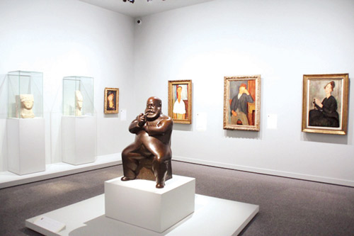 كما قسم المعرض إلى صالات، يتصل بعضها ببعض. وتضمنت كل صالة لوحة إرشادية، تحمل عناوين، تشير إلى ما تحويه كل صالة من أعمال، ومَن نفذها. ومن تلك العناوين (التكعيبيون الأجانب) و(شاغال ومجتمع لاورش) و(موديلياني حي مونابرس) و(ورشة عمل كونستانتين برانكوشي).