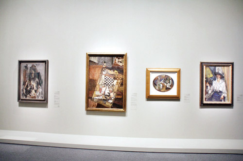 أما جانب الحركات الفنية فسيجد الزائر التكعيبية من خلال أعمال بارزة، مثل «الفتاة والطارة» لبابلو بيكاسو (1919)، و»طبيعة صامتة على كرسي» لخوان غريس (1917).