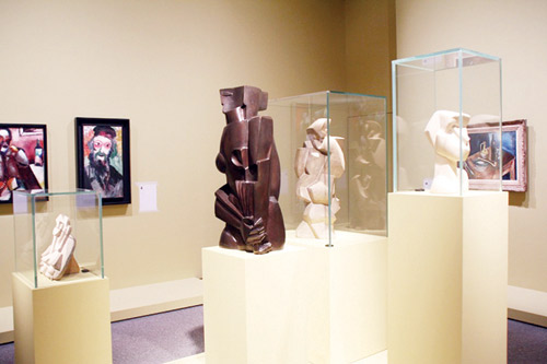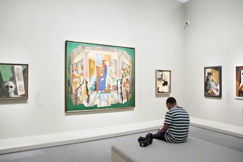 يُذكر أن بابلو بيكاسو قام، بالتعاون مع الفنان الفرنسي جورج براك، بابتكار مبدأ التكعيبية مستمدًا الإلهام من أعمال بول سيزان ومن المنحوتات الإفريقية. وتوضح أعمال بيكاسو الفنية المعروضة، مثل «امرأة جالسة على كرسي» (1910)، سعيه إلى عدم إيضاح الخطوط التي ترسم معالم الشخص في إطار تجريدي.