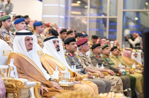 رعى صاحب السمو الملكي الأمير عبدالعزيز بن سعود بن نايف بن عبدالعزيز وزير الداخلية، مساء أمس الأول، حفل تخريج كلية الملك فهد الأمنية لطلبة الدورة التأهيلية الثامنة والأربعين للضباط الجامعيين، والدفعة الستين من طلبة بكالوريوس العلوم الأمنية وطلبة الدفعة السادسة من البرنامج الأكاديمي الأمني للابتعاث الخارجي، وذلك في إستاد الأمير نايف بمقر الكلية في الرياض. وفور وصول سموه عُزف السلام الملكي، ثم استعرض حرس الشرف.