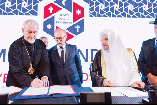 من جهة أخرى وقعت رابطة العالم الإسلامي اتفاقية باريس للعائلة الإبراهيمية مع جميع المكون الديني الفرنسي الكاثوليكي والأرثوذكسي والبروتستانتي، لتكون بذلك أول منظمة إسلامية تجمع ممثلين عن أتباع الأديان الكتابية في وثيقة تعاون واحدة للعمل على المشتركات بينها الموضحة في تفاصيل الاتفاقية من أجل تعزيز جهود السلام والوئام في مواجهة خطاب التطرف والكراهية والعنصرية والتحريض على استقرار وسلم المجتمعات.