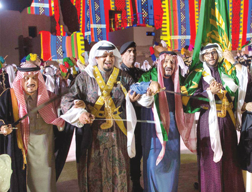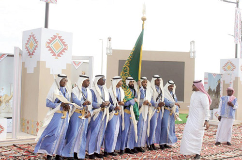 وشددت دارة الملك عبدالعزيز على حضور العرضة السعودية في ملحمة توحيد البلاد على يد الملك المؤسس عبدالعزيز -رحمه الله- الذي كان حريصًا عليها قبل انطلاق المعارك، وهي أداء مهيب متزن، يثير العزائم، ويحيي في النفوس مشاعر الشجاعة، ولاسيما شجاعة الفرسان.