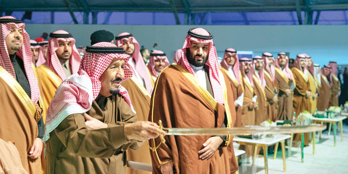 رفعُ ساعدهِ - حفظه الله - السيف في العرضة السعودية وهو يمور بجسمه يميناً ويساراً وتأثره بالكلمات والذكريات التي يحملها حول العرضة السعودية، صورة أخرى تتداولها ذاكرته بشم رائحة البارود وعطر النار التي أحدثها والده المؤسس عبدالعزيز ورجاله من فوهات بنادقهم وسيوفهم، فجاء معها القوة والعلو والخير والبركة والنعمة والفائدة «نحمد الله جت على ما نتمنى، من ولي العرش جزل الوهايب»، ليست إلا فصلاً من فصول وطن قام على القيم وتواعد على قطف ثمر الانتصار ونما بالفضائل.