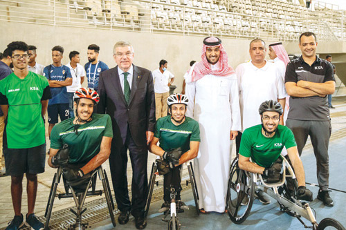 عقب ذلك قام باخ بجولة على مرافق وملاعب مدينة الملك عبدالله الرياضية بالجوهرة والتقى بمجموعات من مواهب رياضية من مختلف الرياضات، حيث تابع يرافقه سمو رئيس اللجنة الاولمبية عرضا لفنون المبارزة والتايكوندو وكذا كرة الطاولة، كما شارك مع الموهوبين في تأدية جانب من هذه الألعاب، متمنياً أن يراهم في أقرب فرصة وهم يحققون أفضل الإنجازات.