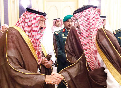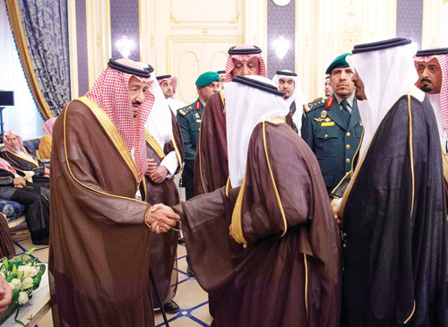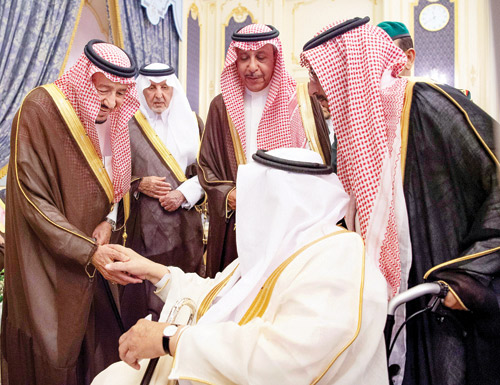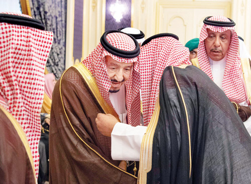 استقبل خادم الحرمين الشريفين الملك سلمان بن عبدالعزيز آل سعود -حفظه الله- أمس، أصحاب السمو الأمراء، وأصحاب الفضيلة العلماء، وجمعاً من المواطنين الذين قدموا للسلام عليه -رعاه الله-.