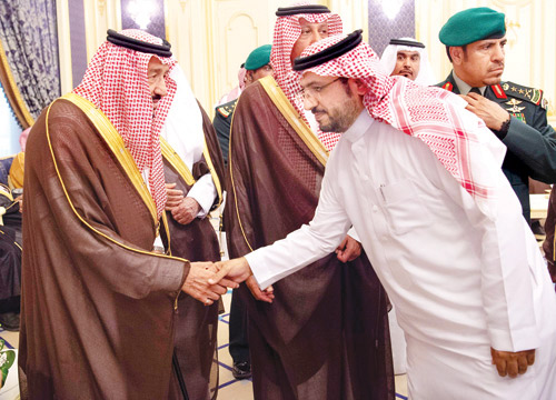 وفي بداية الاستقبال، أنصت الجميع لتلاوة آيات من القرآن الكريم، ثم تشرف الحضور بالسلام على خادم الحرمين الشريفين -أيده الله-.