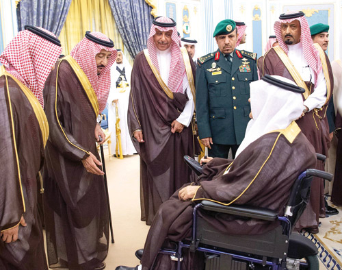 استقبل خادم الحرمين الشريفين الملك سلمان بن عبد العزيز آل سعود -حفظه الله- أمس، أصحاب السمو الأمراء، وسماحة مفتي عام المملكة، وأصحاب الفضيلة العلماء، وجمعاً من المواطنين الذين قدموا للسلام عليه -رعاه الله-.