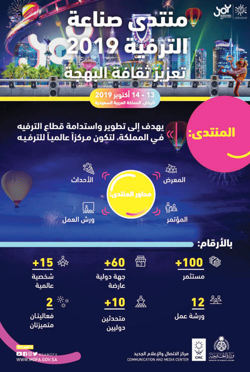 على هذا الصعيد تدخل اليوم المملكة منعطفاً جديداً في دعم وإثراء قطاع الترفيه، بإطلاقها لمنتدى صناعة الترفيه للمرة الأولى في تاريخها، من خلال مبادرة الهيئة العامة للترفيه والتي أطلقها معالي رئيس مجلس إدارة الهيئة الأستاذ تركي بن عبد المحسن آل الشيخ ضمن موسم الرياض والرامية إلى تطوير صناعة الترفيه بالمملكة، وتعزيز ثقافة البهجة، وخلق فرص استثمارية، وبناء مجتمع حيوي نابض بالحياة، يزخر بكافة الخيارات الترفيهية، بما يلبي مستهدفات برنامج جودة الحياة وفق رؤية 2030.