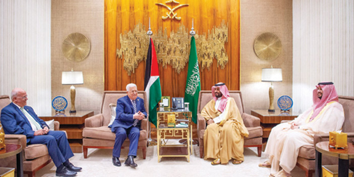 عقد صاحب السمو الملكي الأمير محمد بن سلمان بن عبدالعزيز ولي العهد نائب رئيس مجلس الوزراء وزير الدفاع أمس جلسة محادثات رسمية مع فخامة الرئيس محمود عباس رئيس دولة فلسطين. وجرى خلال الجلسة استعراض تطورات الأحداث على الساحة الفلسطينية، والجهود المبذولة بشأنها، بما يضمن الحقوق المشروعة للشعب الفلسطيني في إقامة دولته المستقلة وعاصمتها القدس الشرقية. وبناءً على المحادثات التي تمت بين خادم الحرمين الشريفين الملك سلمان بن عبدالعزيز آل سعود وفخامة الرئيس الفلسطيني ومحادثات فخامته مع صاحب السمو الملكي الأمير محمد بن سلمان بن عبدالعزيز ولي العهد نائب رئيس مجلس الوزراء وزير الدفاع، واستجابة لرغبة فخامة الرئيس محمود عباس فقد تم الاتفاق على إنشاء لجنة اقتصادية مشتركة ومجلس أعمال سعودي - فلسطيني.