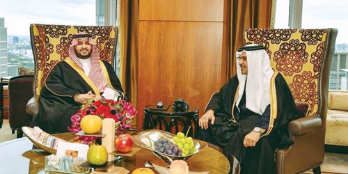 من جهة ثانية استقبل صاحب السمو الملكي الأمير سلمان بن حمد آل خليفة ولي العهد نائب القائد الأعلى النائب الأول لرئيس مجلس الوزراء بمملكة البحرين في مقر إقامته بطوكيو أمس صاحب السمو الملكي الأمير تركي بن محمد بن فهد بن عبد العزيز وزير الدولة عضو مجلس الوزراء.
