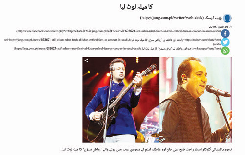 تناقلت أمس صحف هندية وباكستانية، باهتمام كبير وتغطية موسعة الحفل الغنائي الجماهيري الذي أحياه كل من الفنان عاطف أسلم وراحت فاتح علي خان، ضمن موسم الرياض.