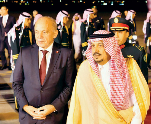 وصل فخامة الرئيس أولي ماورر رئيس الاتحاد السويسري والوفد المرافق له إلى الرياض أمس في زيارة للمملكة وحضور منتدى مبادرة «مستقبل الاستثمار» الذي سيقام في الرياض خلال الفترة من 29 إلى 31 أكتوبر 2019. وكان في استقبال فخامته في الصالة الملكية بمطار الملك خالد الدولي صاحب السمو الملكي الأمير فيصل بن بندر بن عبد العزيز أمير منطقة الرياض. وقد أجريت لرئيس الاتحاد السويسري مراسم استقبال رسمية، حيث عزف السلامان الوطنيان للبلدين، ثم استعرض حرس الشرف.
