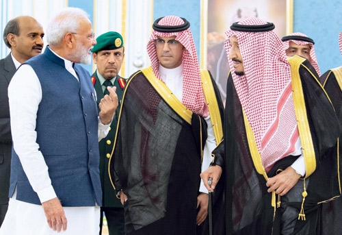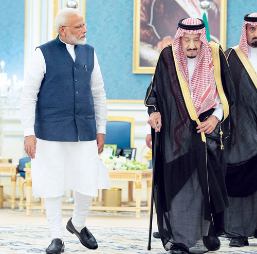 عقد خادم الحرمين الشريفين الملك سلمان بن عبدالعزيز آل سعود - حفظه الله - أمس، جلسة مباحثات رسمية مع دولة رئيس الوزراء بجمهورية الهند ناريندرا مودي. وتم خلال المباحثات، استعراض آفاق التعاون بين البلدين الصديقين في مختلف المجالات، وبحث عدد من الموضوعات ذات الاهتمام المشترك.