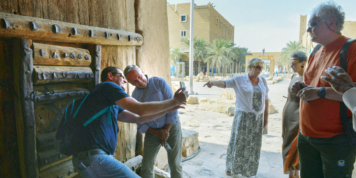 في وسط الرياض التاريخي يسير خمسة سياح بولنديين في قصر المصمك وهم يدركون أنهم من بين أول الأجانب الذين أتوا لزيارة المدينة منذ أن فتحت السعودية أبوابها للسياحة.