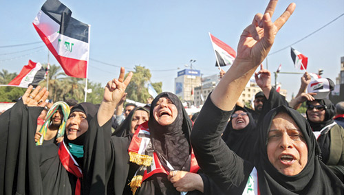 دخلت المظاهرات الشعبية الواسعة في بغداد ومحافظات وسط وجنوب العراق أمس الاثنين يومها الحادي عشر، فيما واصل المتظاهرون الإصرار على مطالبهم. وشهدت ساحة التحرير بوسط بغداد، اليوم، تدفق مزيد من الحشود البشرية ومن بينها مواكب طلاب المعاهد والجامعات والمدارس.