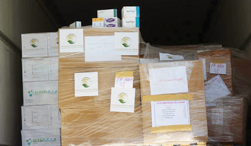 سلّم مركز الملك سلمان للإغاثة والأعمال الإنسانية برنامج الإمداد الدوائي في عدن أمس الأول أدوية ومستلزمات طبية تزن 84 طنًا و360 كيلوغرامًا لتوزيعها على عدد من المستشفيات في محافظات عدن ولحج وأبين والضالع.