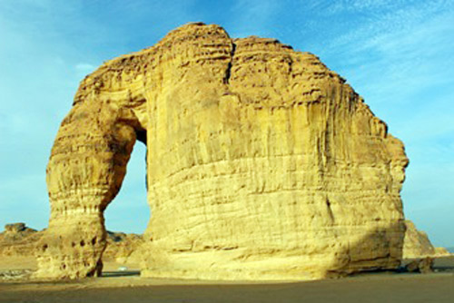 ولعل أبرز نموذج للتشكيلات الصخرية المميزة في المملكة، صخرة الفيل، أو «جبل الفيل»، في العلا. وهي صخرة عملاقة تقع على بعد سبعة كيلومترات إلى الشرق من العلا، يصل ارتفاعها خمسين متراً تقريباً، وتمثِّل مجسماً لفيلٍ عملاق، يتكون من بدن ضخم، وخرطوم يتدلى ليتصل بالأرض. وقد أضافت الأمطار بتساقطها عليها، وتذويبها لبعض مكونات الصخر الرملي فيها، مظهراً جمالياً أضفى عليها جمالاً سطحياً إضافة إلى جمالها التشكيلي الكلي المنحوت.