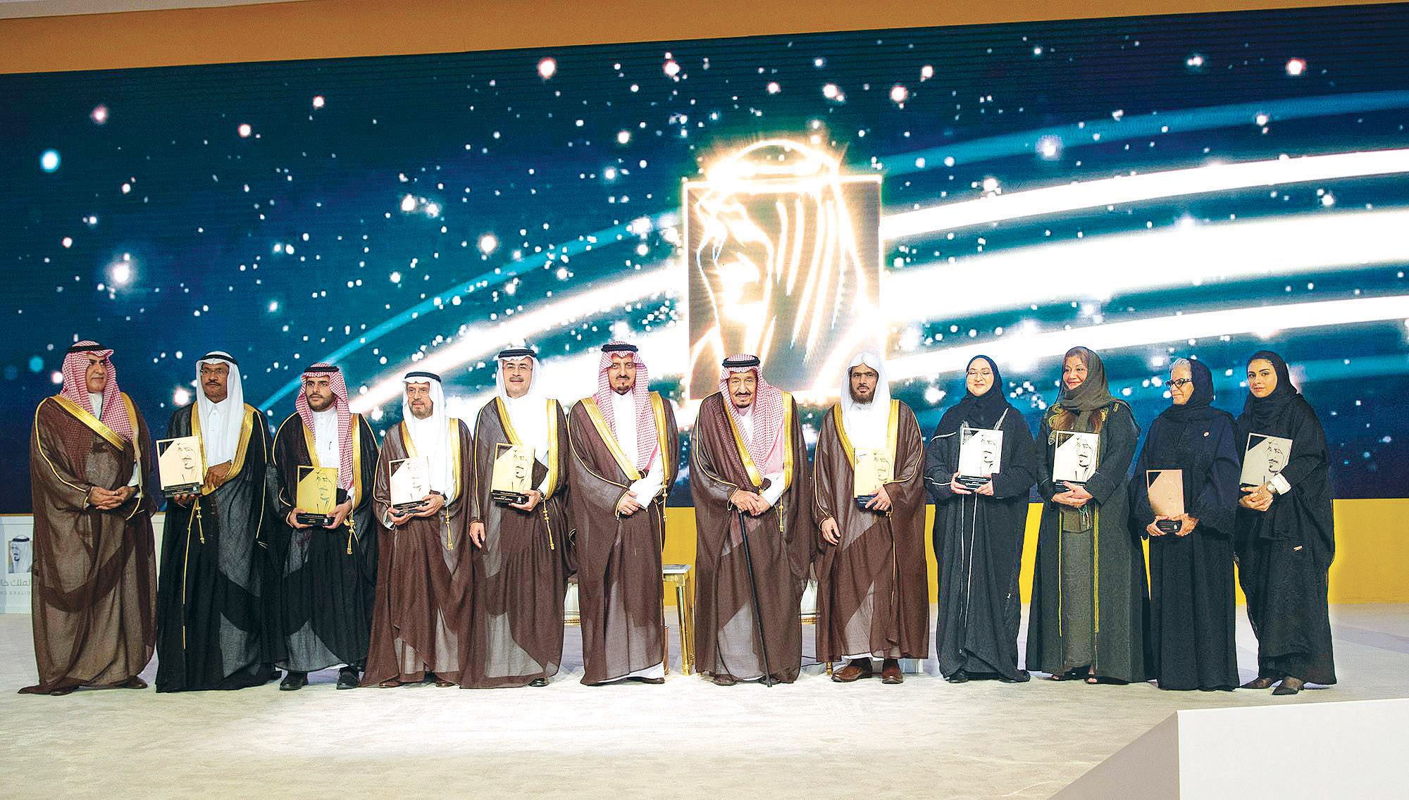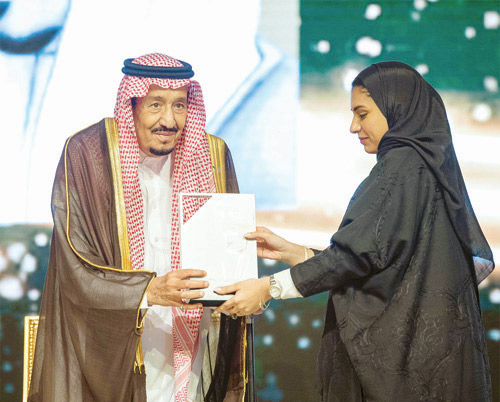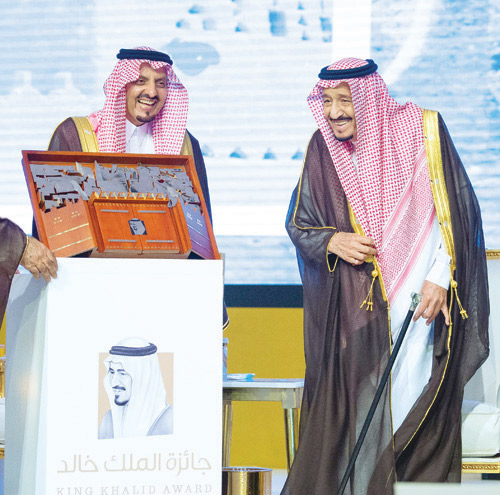 رعى خادم الحرمين الشريفين الملك سلمان بن عبدالعزيز آل سعود -حفظه الله- ليلة أمس حفل تكريم الفائزين بجائزة الملك خالد لعام 2019م بفروعها الثلاثة (شركاء التنمية)، و (التميّز للمنظمات غير الربحية)، و (الاستدامة). ولدى وصول خادم الحرمين الشريفين مقر الحفل، كان في استقباله -رعاه الله- صاحب السمو الملكي الأمير فيصل بن بندر بن عبدالعزيز أمير منطقة الرياض، وصاحب السمو الملكي الأمير عبدالرحمن بن عبدالله الفيصل، وصاحب السمو الملكي الأمير فيصل ابن خالد بن عبد العزيز مستشار خادم الحرمين الشريفين رئيس مجلس أمناء مؤسسة الملك خالد رئيس هيئة جائزة الملك خالد، وصاحب السمو الملكي الأمير حسام بن سعود بن عبدالعزيز أمير منطقة الباحة، وصاحب السمو الملكي الأمير محمد بن خالد بن عبدالله الفيصل، وصاحب السمو الملكي الأمير محمد بن عبدالرحمن بن عبدالعزيز نائب أمير منطقة الرياض، وأعضاء هيئة الجائزة. ثم عزف السلام الملكي. وبعد أن أخذ خادم الحرمين الشريفين الملك سلمان بن عبدالعزيز آل سعود -حفظه الله- مكانه، بدئ الحفل بتلاوة آيات من القرآن الكريم. ثم ألقى صاحب السمو الملكي الأمير فيصل بن خالد بن عبدالعزيز كلمةً، رحب في مستهلها بخادم الحرمين الشريفين الملك سلمان بن عبد العزيز آل سعود في حفل جائزة الملك خالد لهذا العام، معرباً عن شكره له -حفظه الله- على دعمه الكريم للمؤسسات غير الربحية في المملكة ومن بينها مؤسسة الملك خالد وجائزتها الذي هو حافز كبير وشحذ للهمم وشد للعزم لكل من ينتمي لهذه المؤسسات والمستفيدين منها، مما كان له الأثر الإيجابي الفعال في زيادة أعداد هذه المنظمات خلال السنوات الخمس الماضية. وقال سموه: إن القطاع غير الربحي يشكل المحور الثالث من أسس التنمية المستدامة والنهضة الشاملة التي يشهدها وطننا الحبيب، لذا سعت رؤية المملكة 2030 إلى الارتقاء به، ورفع مساهماته في إجمالي الناتج المحلي، ورفع نسبة المشروعات التنموية ذات الأثر الاجتماعي. وأشار سمو الأمير فيصل بن خالد إلى أن مؤسسة الملك خالد منذ نشأتها إلى اليوم، تتبنى سياسات تسعى إلى علاج جذور المعضلات الاجتماعية، وتمكين الفئات المستهدفة في المجتمع من أداء دور اقتصادي واجتماعي، مبيناً أن هذا لن يتحقق إلا بالاستثمار في القطاع غير الربحي، استثماراً قادراً على تحقيق الازدهار والتنمية المستدامة في المملكة. وأوضح سموه أن جائزة الملك خالدبفروعها الثلاثة تسعى إلى تكريم الأفراد والمنظمات والمبادرات التي تقدم حلولاً مستدامة للتحديات المجتمعية، كما تكرم شركات تميزت في تبني الاستدامة. وبين أن الجائزة توفر دراسة متخصصة تحليلية للقدرات التنظيمية لجميع المرشحين لها، كما أنها تقرن بطاقة الأداء الناتجة عن هذا التقييم بفرص تعليمية ودعم متخصص، الأمر الذي يمكن هذه المؤسسات من متابعة التحسن والابتكار والتطور، لإنجاز الهدف المنشود من هذه الجهات لتحقيق رؤية المملكة 2030 . وأكد سموه أن جائزة الملك خالد تحرص على تحفيز شركات القطاع الخاص ممارسات الاستدامة وذلك بتعريف مواطن القوة والتحديات لتلك الشركات، لتتمكن من العمل عليها، مشيراً إلى أن الأعمال التجارية التي استفادت من الجائزة خلال السنوات السابقة تقوم بدور رائد ومهم في دعم الخطط الحكومية والقطاع غير الربحي والمجتمع، حيث تكون مشاريعها ضمن منظومة مسؤولة ترعى مصالحها ومصالح المجتمع سوية، وبذلك يكون لها دور واضح وفعال في تحقيق الاستدامة ضمن إطار رؤية المملكة 2030. بعد ذلك ألقى الأمين العام للجائزة سعود بن عبدالرحمن الشمري، كلمة استعرض فيها أهداف جائزة الملك خالد، وقدم عرضاً عن فروعها، معلناً أسماء الفائزين بها لهذا العام، وإسهاماتهم في تنمية المجتمع ومشاركاتهم في النشاطات الاقتصادية والاجتماعية في المملكة. كما شاهد خادم الحرمين الشريفين عروضاً عن الفائزين بالجائزة. عقب ذلك تفضّل خادم الحرمين الشريفين بتسليم الجوائز للفائزين بفروع الجائزة هذا العام، إذ سلم -أيده الله- جائزة المركز الأو