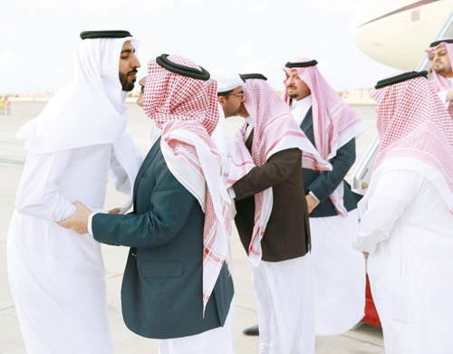 وقد كان في استقبال سموه ومرافقيه لدى وصوله مطار أبوظبي الدولي سمو الشيخ حامد بن زايد آل نهيان رئيس ديوان سمو ولي عهد أبوظبي، وسمو الشيخ شخبوط بن نهيان بن مبارك آل نهيان سفير دولة الإمارات العربية المتحدة لدى المملكة.