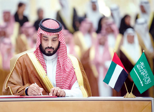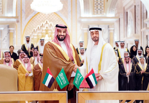 رأس صاحب السمو الملكي الأمير محمد بن سلمان بن عبدالعزيز ولي العهد نائب رئيس مجلس الوزراء وزير الدفاع، وصاحب السمو الشيخ محمد بن زايد آل نهيان ولي عهد أبوظبي نائب القائد الأعلى للقوات المسلحة بدولة الإمارات العربية المتحدة، أمس في قصر الوطن في أبوظبي، الاجتماع الثاني لمجلس التنسيق السعودي-الإماراتي.