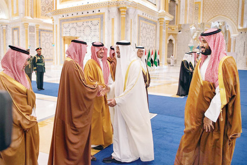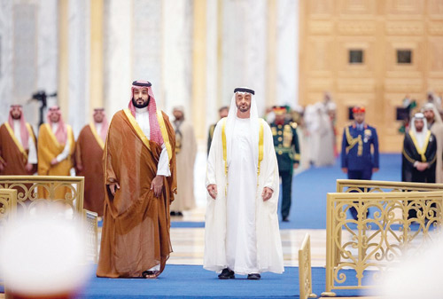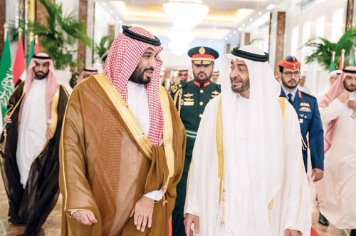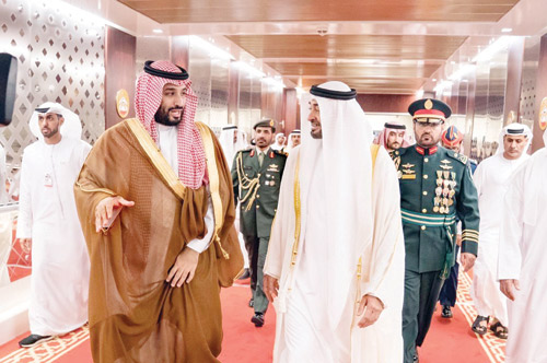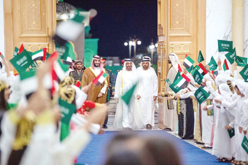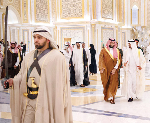 عقب ذلك توجه صاحب السمو الملكي الأمير محمد بن سلمان بن عبد العزيز ، وصاحب السمو الشيخ محمد بن زايد آل نهيان، في موكب رسمي إلى قصر الوطن. وقد أجريت لسمو ولي العهد مراسم استقبال رسمية، فور وصول الموكب الرسمي، إلى مدخل قصر الوطن في أبو ظبي، حيث رافق الموكب مجموعة من الخيول، وأطلقت المدفعية 21 طلقة ترحيبية، فيما أدت فرق ألوانا تراثية ترحيباً بمقدم سمو ولي العهد.