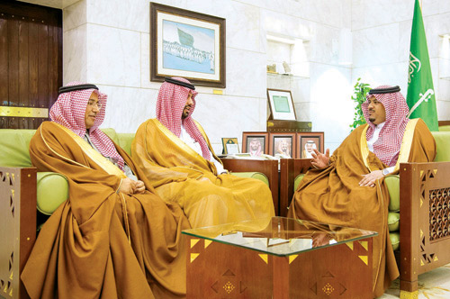 استقبل صاحب السمو الملكي الأمير فيصل بن بندر بن عبدالعزيز أمير منطقة الرياض في مكتبه بقصر الحكم أمس, صاحب السمو الأمير فيصل بن عبدالعزيز بن محمد بن عياف أمين منطقة الرياض ومعالي المهندس طارق بن عبدالعزيز الفارس, بعد صدور الأمر الملكي الكريم بإعفاء معالي المهندس طارق الفارس، وتعيين سمو الأمير فيصل بن عبدالعزيز بن محمد بن عياف أمينًا للمنطقة.