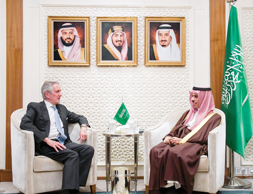 استقبل صاحب السمو الأمير فيصل بن فرحان بن عبدالله وزير الخارجية أمس، سفير جمهورية فرنسا لدى المملكة فرانسوا غوييت. وجرى خلال الاستقبال استعراض العلاقات الثنائية بين البلدين الصديقين، والموضوعات ذات الاهتمام المشترك. حضر الاستقبال وكيل الوزارة للشؤون السياسية والاقتصادية الدكتور عادل بن سراج مرداد. كما استقبل سمو وزير الخارجية، أمس معالي الأمين العام لمجلس التعاون لدول الخليج العربية الدكتور عبداللطيف بن راشد الزياني. وجرى خلال الاستقبال استعراض عدد من الموضوعات المتعلقة بمسيرة العمل الخليجي المشترك، والموضوعات ذات الاهتمام المشترك.