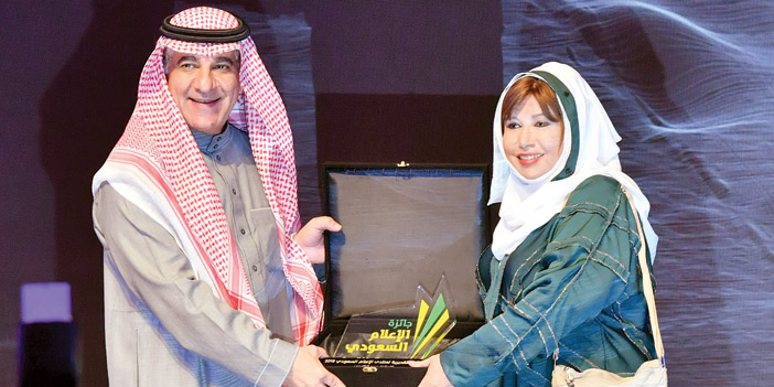 كما شاهد الحضور تقريراً مصوراً بعنوان «رواد المهنة» استعرض فيه أهم الشخصيات الإعلامية المؤثرة والمعاصرة. وسلم معالي وزير الإعلام جائزة «رواد المهنة» لمعالي المستشار في الديوان الملكي الأستاذ عبدالله المحيسن، ولرئيس مجلس إدارة هيئة الصحفيين السعوديين الأستاذ خالد المالك، والإعلامية مريم الغامدي.