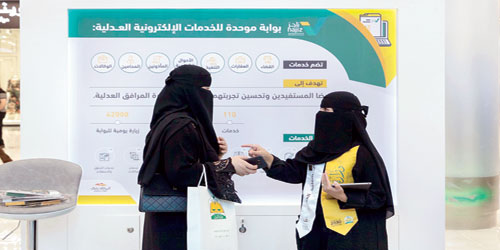 ويتواجد في المعرض عدد من موظفات وزارة العدل المختصات في الشريعة والقانون والاجتماع والتقنية والاتصال والإدارة، حيث يقمن باستقبال الزائرات ويعرفن بالإجراءات والأنظمة المعمول بها في قطاع العدالة لتمكين المرأة من حقوقها الشرعية والقانونية دون أي عوائق، كما تربط الموظفات زائرات المعرض بالمنصات العدلية التي توفر العديد من الخدمات الإلكترونية والإرشادية للمستفيدات.