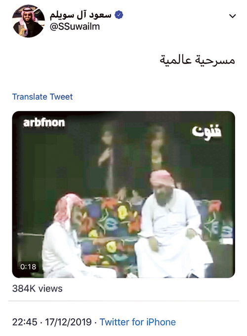 في حين خرج رئيس النصر السابق سعود آل السويلم بتغريدة عبر حسابه في « تويتر» تتضمن إيماءة « تهكمية» على تعثر الهلال من تحقيق مُنجز لم يُحققه ناديه الذي كان يرأسه أو غيره ، والمُتمثّل بتأهل حامل اللقب الآسيوي للمباراة النهائية لبطولة كأس العالم للأندية !!.