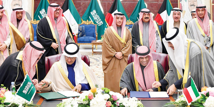 وقعت المملكة العربية السعودية مع دولة الكويت الشقيقة أمس في الكويت، اتفاقية ملحقة باتفاقيتي تقسيم المنطقة المقسومة والمنطقة المغمورة المحاذية للمنطقة المقسومة بين البلدين ، ومذكرة تفاهم تتعلق بإجراءات استئناف الإنتاج النفطي في الجانبين.