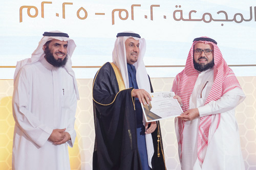 وأضاف:» إن ما يدعو للفخر في هذه الجامعة هو أن من عمل في الخطة الإستراتيجية الأولى والثانية والثالثة هم رجال الجامعة الذين صنعوا هذا المنجز وهذه الخطة التي أصبحت في وقت سابق مرجعاً لدى وزارة التعليم في خطة آفاق ومرجعاً للكثير من الجامعات التي سبقت جامعة المجمعة في الزمن حتى أصبحنا نقدم الخبرة لمؤسسات الوطن حيث قدمنا خبراتنا لـ190 وزارة وهيئة وجهة وجامعة في المملكة»، مشيرا إلى أن الجامعة -وبجهود منسوبيها- استطاعت أن تسابق هذه الخطة وتسمو عليها وتحقق منجزات أكبر وذكر أن مما يميز هذه الخطة أنها عملت وفق أرقى المعايير العالمية وبإمكانات وأدوات محلية في هذه الجامعة ويندر أن تتحقق مثل هذه المعادلة الصعبة في أي مؤسسة كانت ولكن نحن في هذه الجامعة دائماً ما نراهن على أمرين أساسين بعد توفيق الله الأمر الأول الثقة في كفاءة الجامعة وقياداتها ومنسوبيها الذين يقدمون الجهد والإخلاص والتفاني والأمر الثاني القيم التي رسَّختها الجامعة في كل أعمالها بعد ذلك قام معالي مدير الجامعة بتكريم المشاركين في إعداد الخطة من رؤساء وأعضاء اللجان».