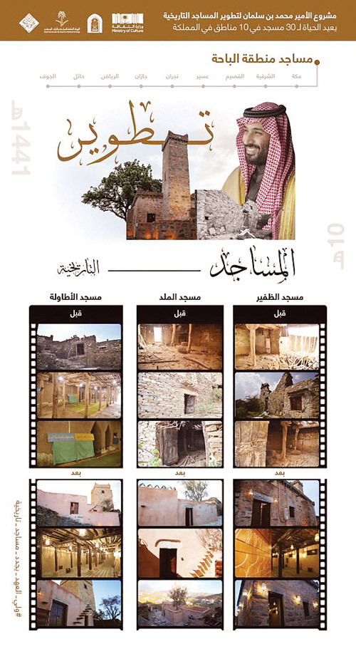 أنجز مشروع «محمد بن سلمان لتطوير المساجد التاريخية»، تطوير وتأهيل كامل مساجد المرحلة الأولى من المشروع التي بلغ عددها 30 مسجداً تاريخياً في 10 مناطق مختلفة في المملكة بتكلفة 50 مليون ريال خلال 423 يوماً، بتوجيه ومتابعة من لدن صاحب السمو الملكي الأمير محمد بن سلمان بن عبد العزيز، ولي العهد نائب رئيس مجلس الوزراء وزير الدفاع -حفظه الله- ضمن التوجيه الكريم بتطوير وتأهيل 130 مسجداً تاريخياً على مراحل عدة. وجاء توجيه سموه الكريم -حفظه الله- بتنفيذ مشاريع تطوير المساجد التاريخية وتأهيلها خلال المرحلة الأولى من قبل شركات سعودية متخصصة في المباني التراثية وذوات خبرة في مجالها، مع أهمية إشراك المهندسين السعوديين للتأكد من المحافظة على الهوية العمرانية الأصيلة لكل مسجد منذ تأسيسه، والذي تم عبر برنامج إعمار المساجد التاريخية في الهيئة العامة للسياحة والتراث الوطني بالشراكة مع وزارة الشؤون الإسلامية والدعوة والإرشاد ووزارة الثقافة والجمعية السعودية للمحافظة على التراث. وخلال فترة العمل حرص المشروع على مراعاة أدق التفاصيل، لتعود المساجد على ما كانت عليه من تصميم بمواد تراثية محلية، وإضافة عناصر جديدة ضرورية مثل تخصيص مصليات للنساء، وتوفير خدمات للأشخاص ذوي الإعاقة وتطوير المرافق الخدمية مثل التكييف والإنارة والصوتيات وتنفيذها بأسلوب يتوافق مع هوية المسجد التاريخية. وتتفاوت أعمار المساجد التاريخية ضمن المرحلة الأولى بين 1432 عاماً و60 عاماً، متوزعة في مناطق مختلفة في المملكة، إذ يعود تأسيس أحدها إلى عهد الصحابي الجليل جرير بن عبد الله البجلي -رضي الله عنه-، وهو مسجد جرير البجلي في محافظة الطائف، فيما تُعرف بعضها على أنها كانت منارة علمية مثل مسجد الشيخ أبو بكر الذي يعود تأسيسه إلى أكثر من 300 سنة في محافظة الأحساء. ومع بداية شهر جمادى الأولى من العام الحالي 1441هـ بدأ عدد من مساجد المرحلة الأولى في معاودة استقبال المصلين بعد الانقطاع عن بعضها قبل فترة الترميم لمدة تزيد عن 40 عامًا، لتنطلق مرحلة جديدة لهذه المساجد لتصبح رمزاً دينياً تاريخياً من شأنه المحافظة على الإرث الديني والعمارة الإسلامية وإعادة أحياء القرى التراثية وأواسط المدن التاريخية.