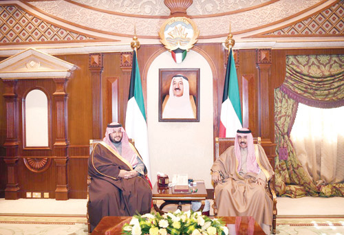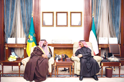 كما استقبل سمو الشيخ صباح خالد الحمد الصباح رئيس مجلس الوزراء الكويتي في مكتبه أمس صاحب السمو الملكي الأمير تركي بن محمد بن فهد بن عبدالعزيز وزير الدولة وعضو مجلس الوزراء والوفد المرافق لسموه. وجرى خلال الاستقبال تبادل الأحاديث الأخوية وبحث العلاقات الثنائية المتميزة بين البلدين وسبل تطويرها. حضر الاستقبال الشيخ علي الجراح وزير شؤون الديوان الأميري، والشيخ أحمد المنصور الصباح نائب رئيس مجلس الوزراء وزير الدفاع، والشيخ أحمد ناصر المحمد الصباح وزير الخارجية، وسفير دولة الكويت لدى المملكة الشيخ علي خالد الجابر الصباح، وسفير خادم الحرمين الشريفين لدى الكويت صاحب السمو الأمير سلطان بن سعد بن خالد والوفد المرافق لسموه.
