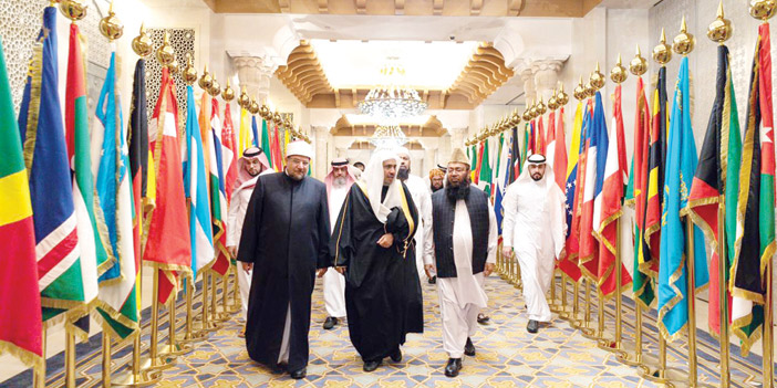 إلى ذلك تحدث معالي الأمين العام لرابطة العالم الإسلامي الشيخ الدكتور محمد بن عبد الكريم العيسى قائلاً : «من هذه الرحاب الطاهرة، وبصحبة هذا الجمع الكريم نُشيد بالجهود الإسلامية والإنسانية الكبيرة لخادم الحرمين الشريفين الملك سلمان بن عبد العزيز آل سعود «حفظه الله»، وبجهود صاحب السمو الملكي الأمير محمد بن سلمان بن عبد العزيز ولي العهد نائب رئيس مجلس الوزراء وزير الدفاع - حفظهما الله -، وعلى رأسها خدمةُ الحرمين الشريفين، وخدمةُ الكتاب والسنة، ونُصرةُ القضايا الإسلامية، وكافةُ القضايا العادلةِ عموماً، إضافة إلى مواجهة التطرفِ والإرهاب (فكرياً وعسكرياً وإعلامياً مع قطع سُبُلِ تمويله).